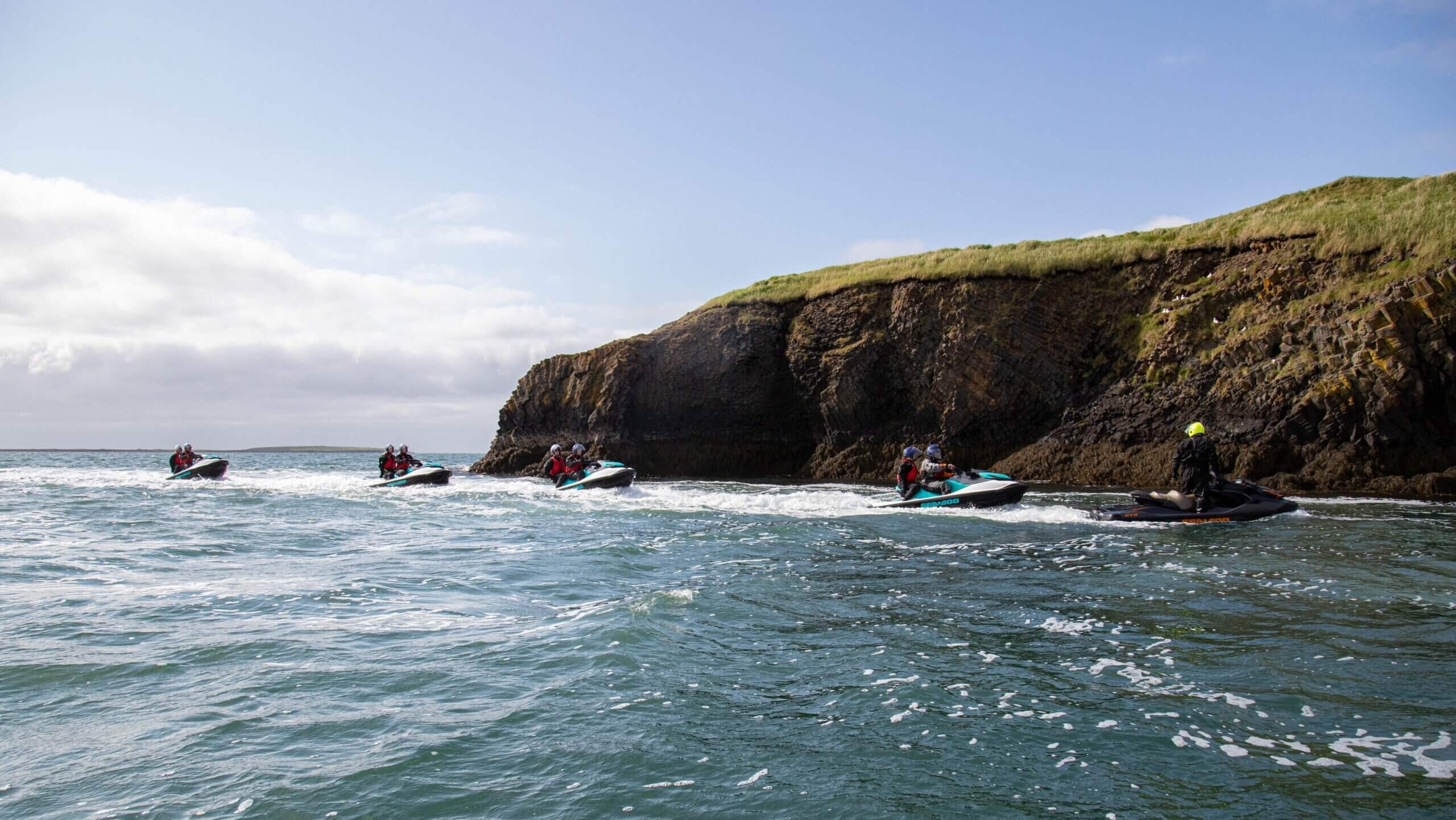 Your journey begins at our Gufunes base, where we outfit you with a high-quality drysuit and fleece underlayer to stay warm and dry in any weather. From there, you’ll set off to explore Reykjavík’s stunning coastline, with scenic stops and time to ride freely in calm, safe waters—all with your guide nearby to ensure a smooth and memorable experience.