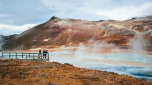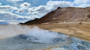Our final stop is the colourful geothermal area of Hverir, reached by crossing a small mountain pass. On the other side, you will experience the force of nature, amidst sulphurous fissures in cracked earth, steaming fumaroles and bubbling mud pools.